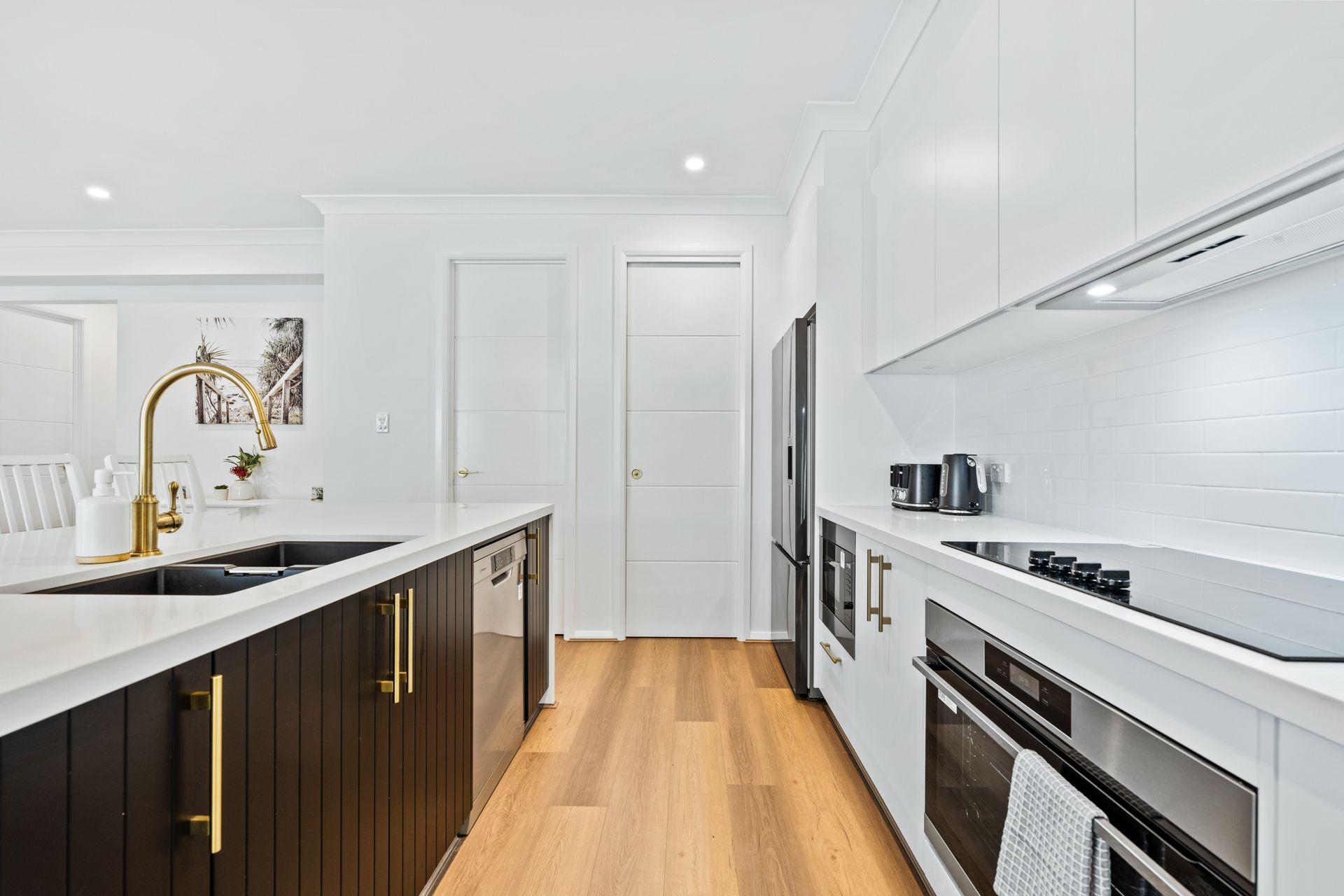 • Includes modern conveniences such as ducted air conditioning, dishwasher, coffee machine, washing machine, and dryer